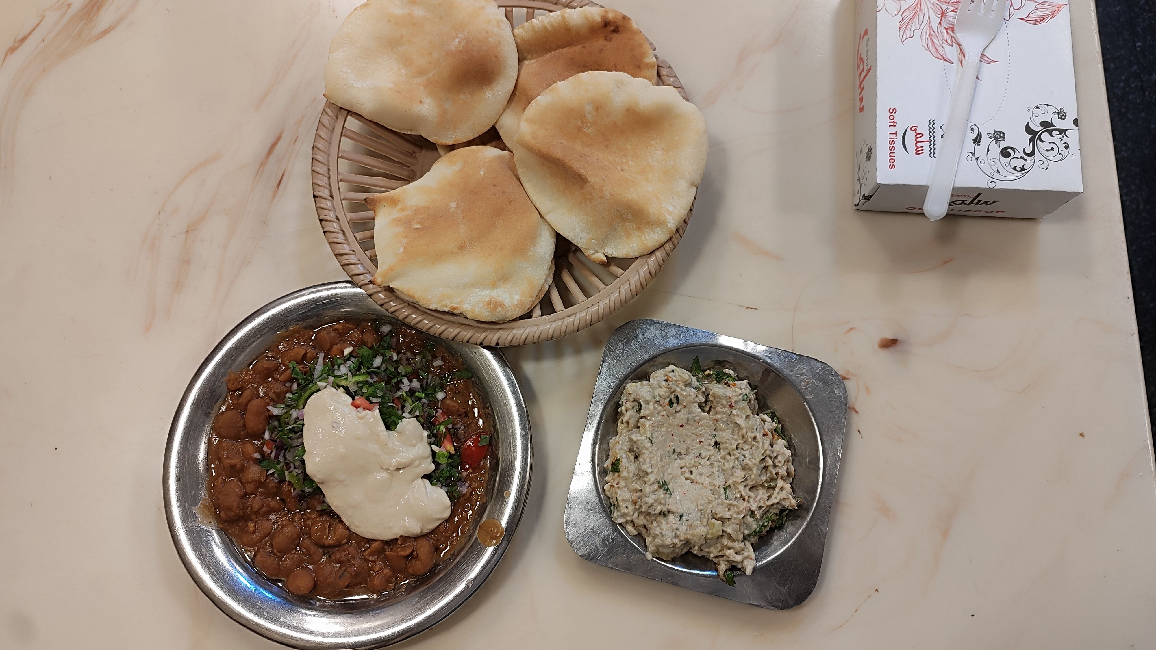 Booked a bike ride from bus station to Ithaka Raml Hostel, checked-in and took some rest. Got ready and ate Foul and bread at the very famous Foul Mohamad Ahmed restaurant, it was very good.