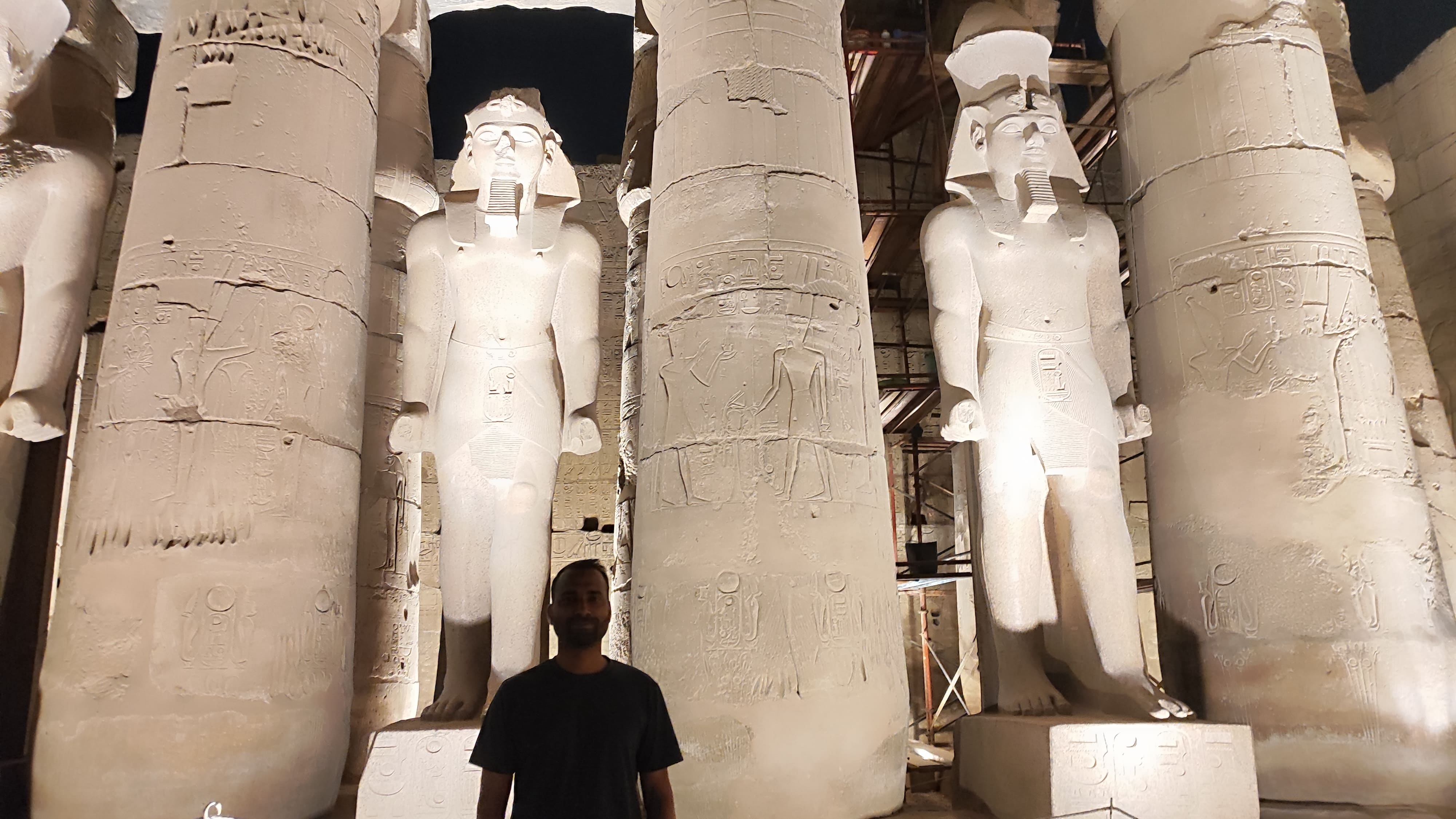 Came back to hostel, took rest and in the evening, took the public ferry across Nile to reach East bank. Ate food and drank a tea at Kaya Restoz, on the Nile Corniche. Walked to Luxor temple, bought ticket to Luxor temple for 500 EGP.