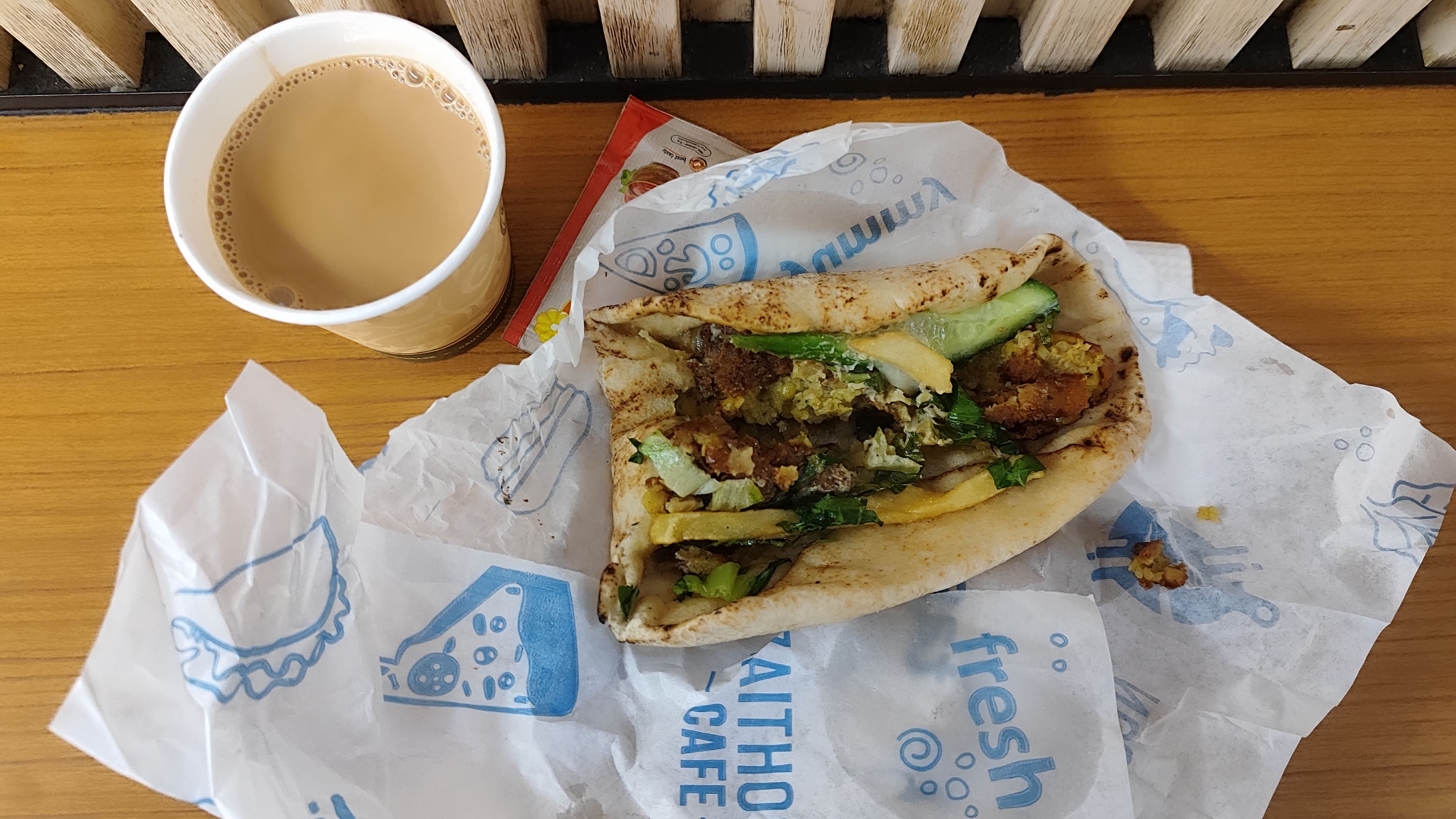 Ate a falafel and drank a tea at Zaithoon cafe in Sharjah airport, prayed Isha prayer. Boarded my flight to Bangalore at night, reached Bangalore airport around 3 AM.