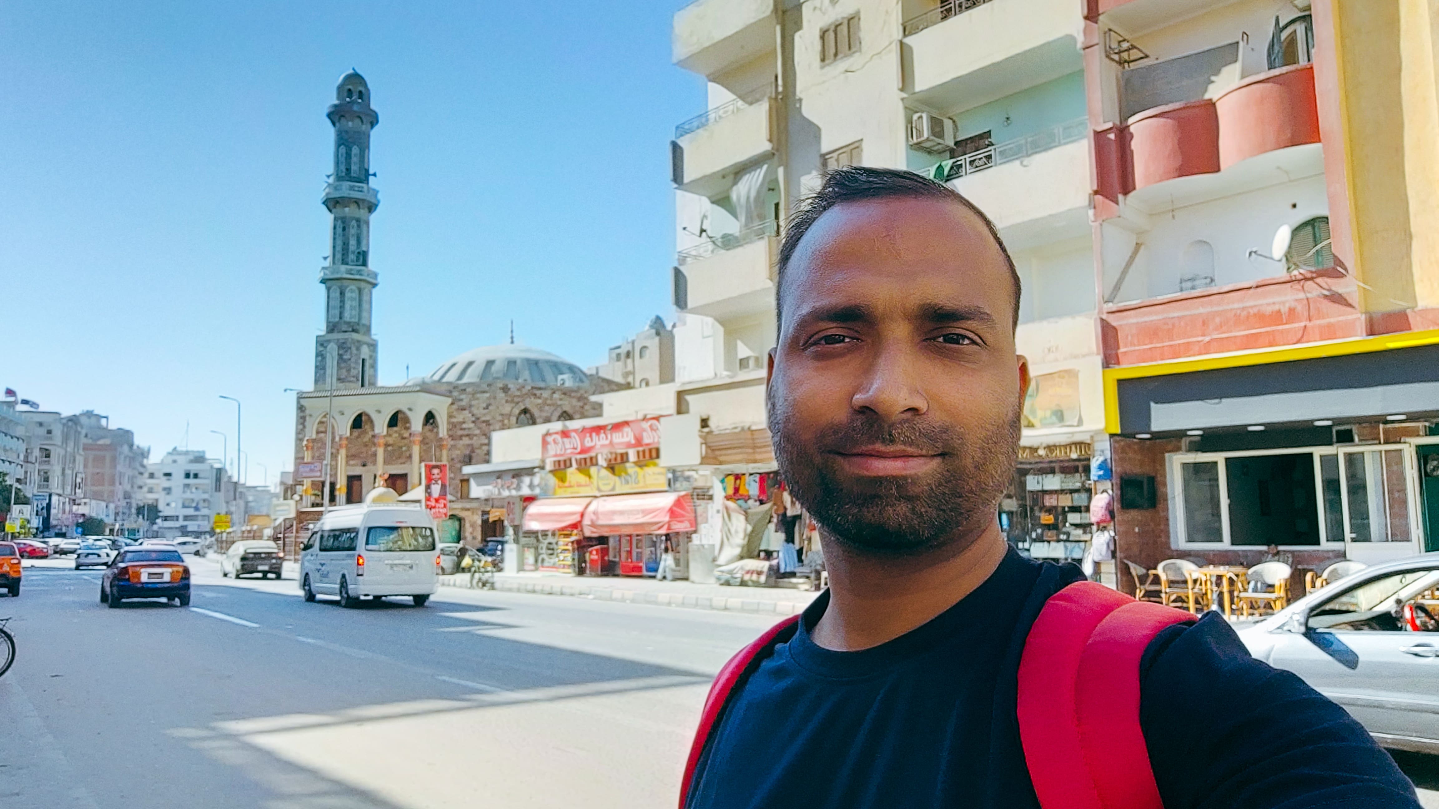 Took the GoBus from Cairo to Hurghada, reached Hurghada around 7:30 AM, walked to Bedcoin hostel. Cleaned myself, had breakfast, checked-in, took shower and walked to the beautiful El Mina mosque for Jummah prayer.
