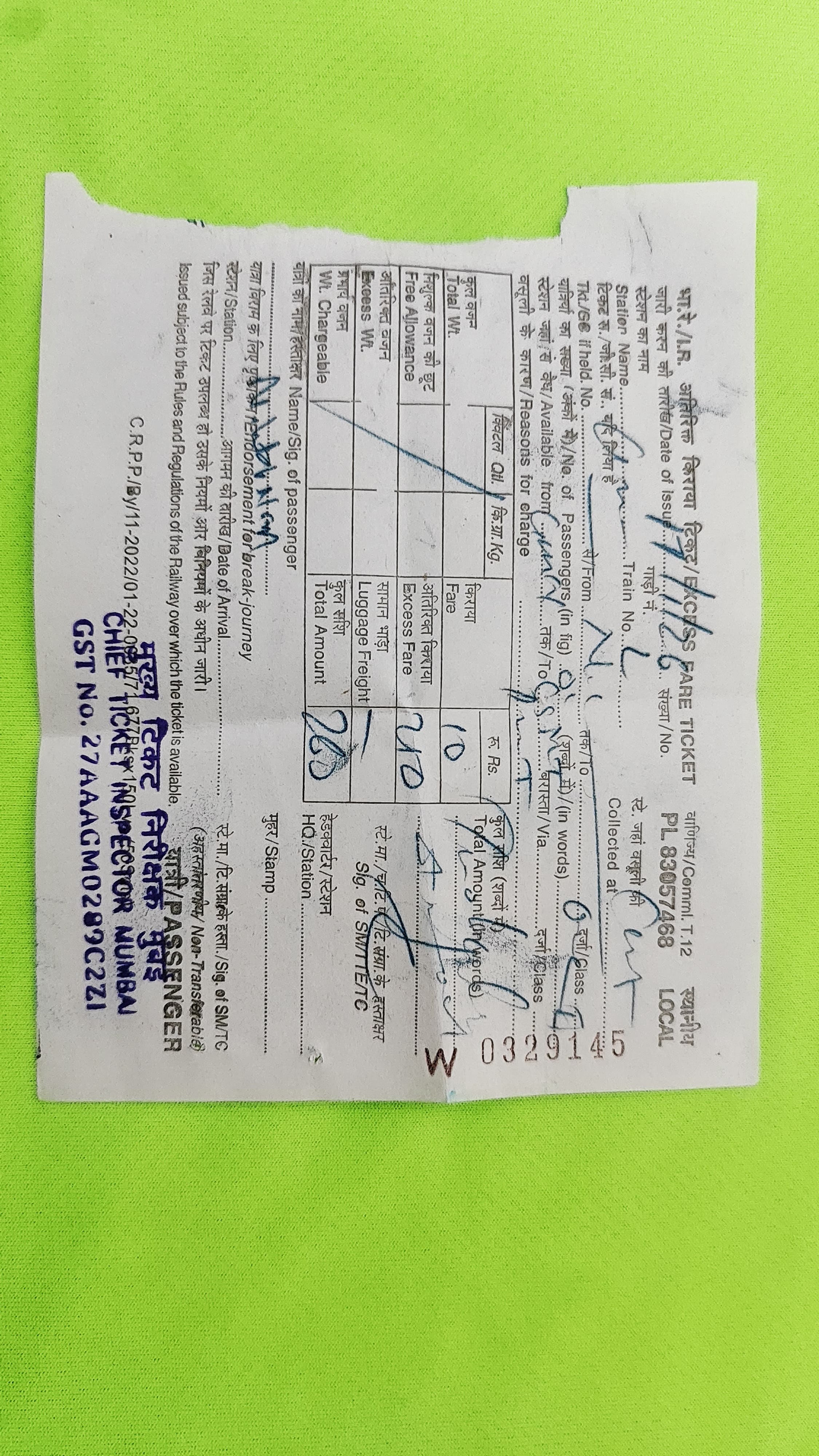 Came back to hostel, got ready and packed my bags, it was time to leave Hammock hostel in Khar Danda. Went to Bandra station, bought the ticket to CSMT, but unknowingly sat in first class, while getting down at CSMT, a ticket checker asked me to pay a fine of 260, I paid the fine.